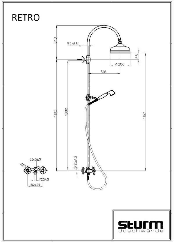 Душевая стойка Sturm RETRO украсит интерьер ванной комнаты. Изделие предназначено для пристенного варианта установки.